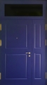 Полуторная дверь с МДФ синего цвета и стеклом во фрамуге Арт-431